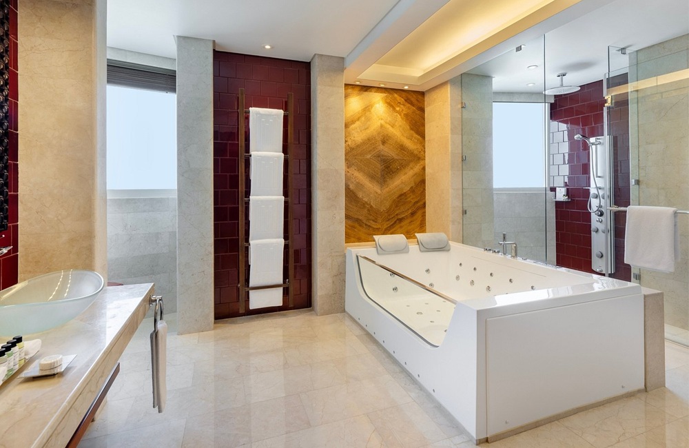 المكان واسع بترف، أنيق دون تكلف، حيث اجتمعت الحداثة مع لمسة دافئة جعلت من الجناح منزلاً مؤقتًا لا يُمل. كل تفصيلة – من الوسائد الناعمة، إلى الحمام الرخامي، إلى الإطلالة الساحرة على المدينة – كانت تتحدث بلغة الجمال.