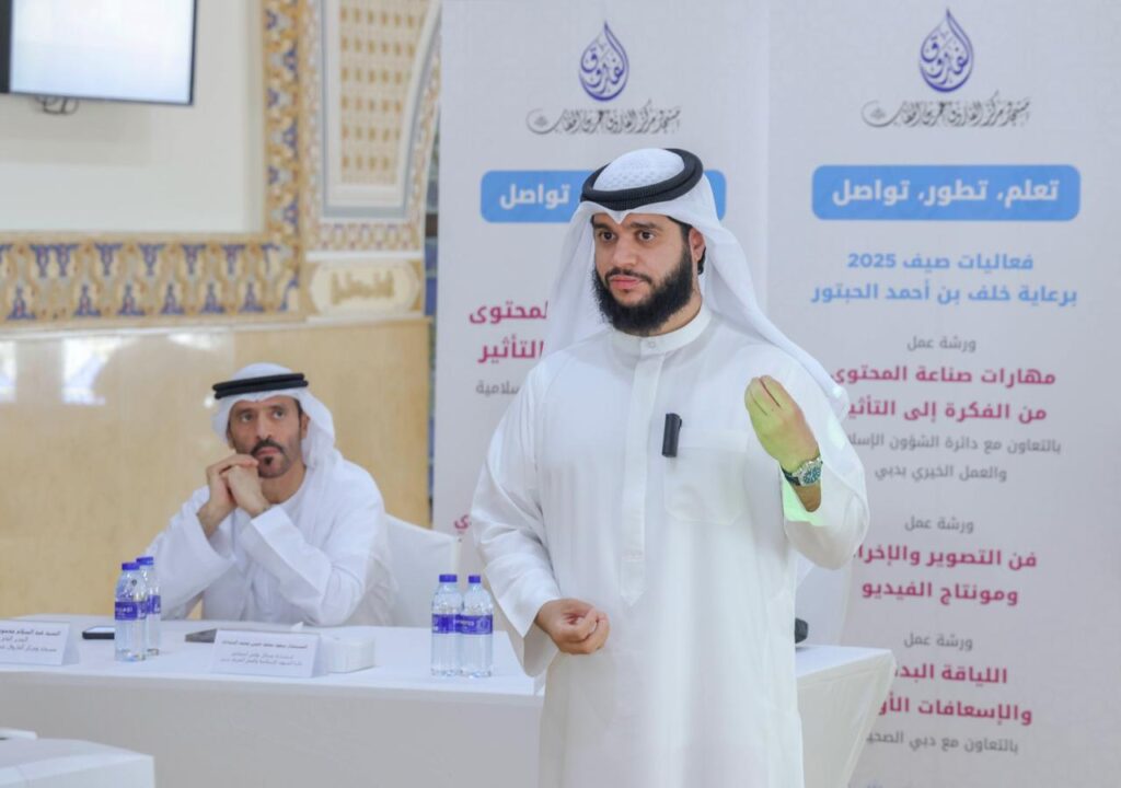 جاءت انطلاقة الفعاليات بورشة عمل بعنوان “مهارات صناعة المحتوى: من الفكرة إلى التأثير”، نظمت بالتعاون مع دائرة الشؤون الإسلامية والعمل الخيري بدبي، وقدمها المستشار سعود محمد حسن الحمادي، استشاري وسائل التواصل الاجتماعي في الهيئة. واستعرضت الورشة الأدوات والأساليب اللازمة لإنشاء محتوى رقمي فعال، سواء على الصعيد الشخصي أو المهني، وكيفية صياغة الأفكار وتحويلها إلى رسائل مقروءة ومرئية مؤثرة، تتماشى مع تطلعات العصر الرقمي وتخاطب مختلف الفئات المستهدفة.
