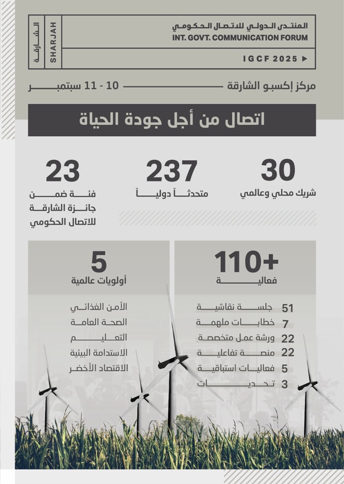 ينطلق يومي 10 و11 سبتمبر في مركز إكسبو الشارقة تحت شعار «اتصال من أجل جودة الحياة»