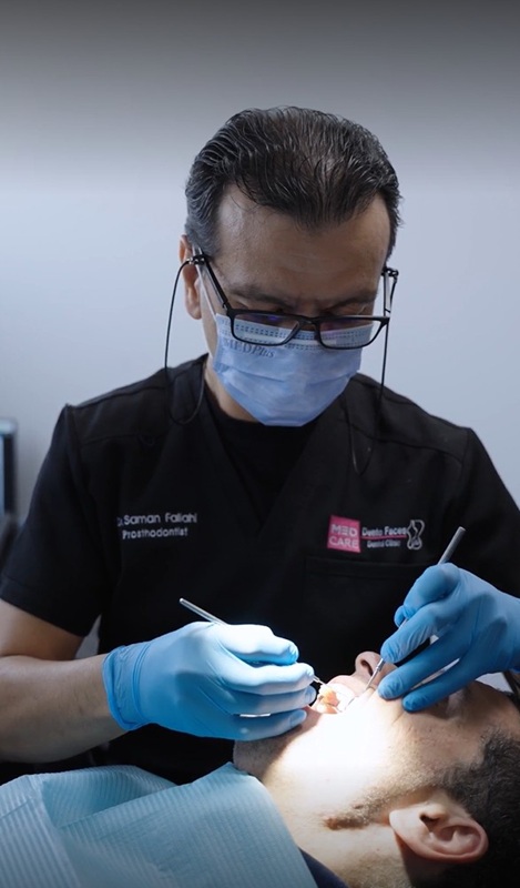 - بفضل استخدام تقنيات متطورة ثلاثية الأبعاد، نجح الدكتور سامان فلاحـي وفريقه في “ميدكير دينتوفيس” في استعادة وظائف الفم وملامح الوجه الجمالية للمريض، عبر حل مبتكر صُمّم خصيصاً لحالته