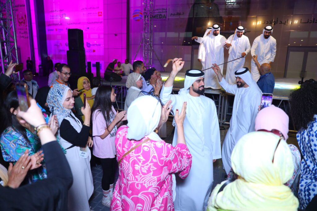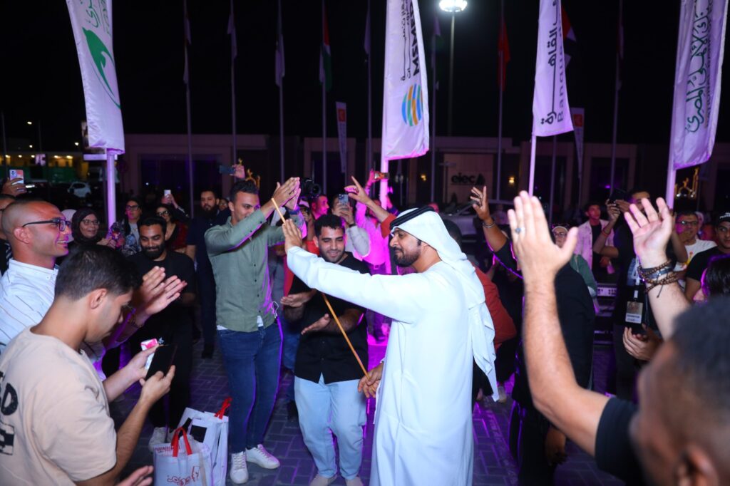 وتجمعوا من كافة أروقة المعرض على الجناح الاماراتي ، يشاركون الفرقة الشعبية والوفد الاماراتي الغناء بها ، وسط أجواء احتفالية كبيرة ، حيث تم توزيع مئات من الأعلام الوطنية على الزائرين من الجمهور، وخرجت الفرقة لتقدم فقراتها على المسرح الخارجي بناء على رغبة الجمهور الغفير ، والقائمين على تنظيم معرض تراثنا 2025 ، وتأكيد كافة الزائرين على أن مشاركة الجناح الاماراتي ، كان من أروع ما شاهدوه بالمعرض ، وأكد على ذلك كافة المسؤولين وقيادات جهاز تنمية المشروعات .