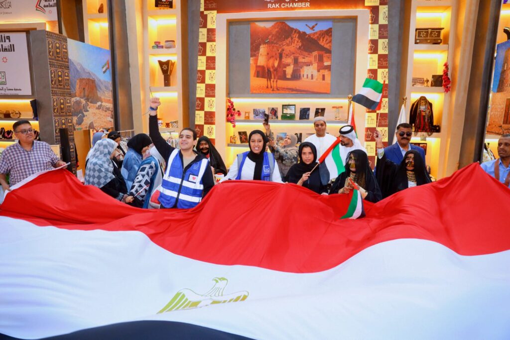 تزامنًا مع احتفالات مصر في أكتوبر ، شارك الوفد الاماراتي بجناحهم بمعرض تراثنا 2025 ، في الاحتفالية التي نظمها جهاز تنمية المشروعات بكافة أرجاء المعرض مع العارضين والزوار ، ومشاركة الدول الضيوف في هذه الدورة بجانب دولة الامارات ، وهم تونس والمملكة الأردنية ودولتي الجزائر وباكستان