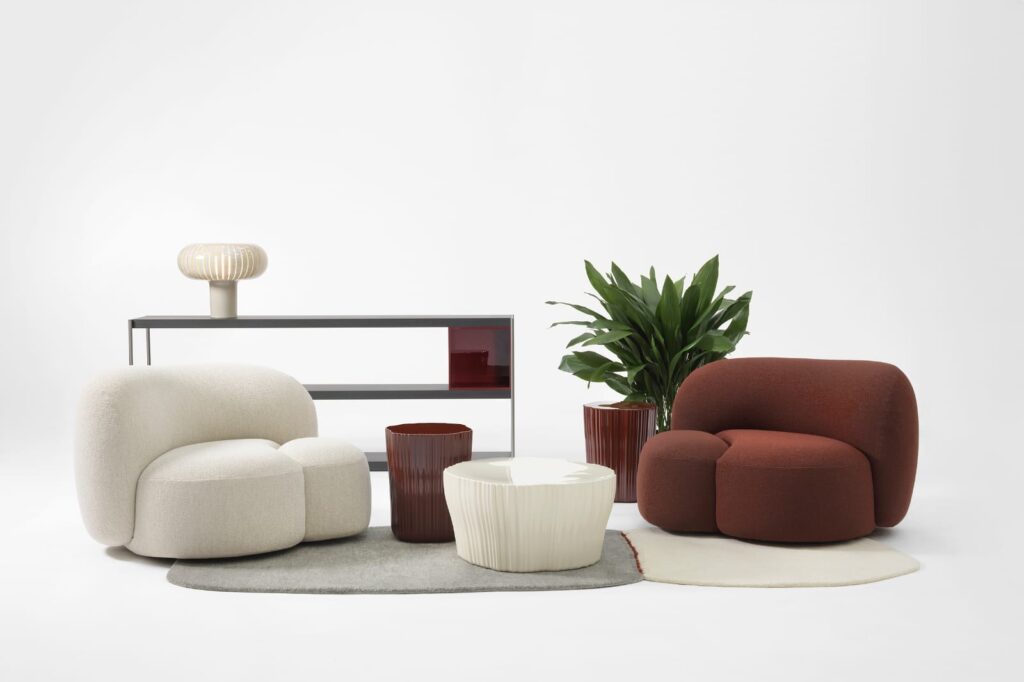 تُعيد مجموعةAaland من تصميم “باتريسيا أوركيولا” تعريف مفهوم التواصل الاجتماعي من خلال مقاعد مترابطة يمكن تنسيقها بإسلوب يشبه الجُزر، مستوحاة من انسجام الأرخبيلات الطبيعية. وتتميّز هذه المجموعة بمرونتها العالية من حيث التشكيل، حيث يمكن جمع الكراسي بذراعين والأرائك والوسائد الأرضية معاً بحرّية لإنشاء مساحات ديناميكية قابلة للتكيّف حسب الحاجة. وتُصمَّم المجموعة بأغطية قابلة للإزالة من قماش البوكلية والساتان، لتُحوّل المنزل إلى نظام بيئي مرن يجمع بين الراحة والتفاعل الإنساني. وتكتمل هذه الرؤية بمجموعةCorteza من أوركيولا أيضاً، وهي تشكيلة من الطاولات والأحواض المستوحاة من الطبيعة والمصنوعة من مواد معاد تدويرها. وتمنح الخطوط المُحاكية لقشرة الأشجار والأشكال العضوية لهذه القطع لمسة جمالية حسّية وملموسة تنسجم مع البيئات الداخلية والخارجية، في تجسيد مثالي للغة التصميم المستدامة والمفعمة بالإحساس الذي يتميز بها أسلوب “أوركيولا”.