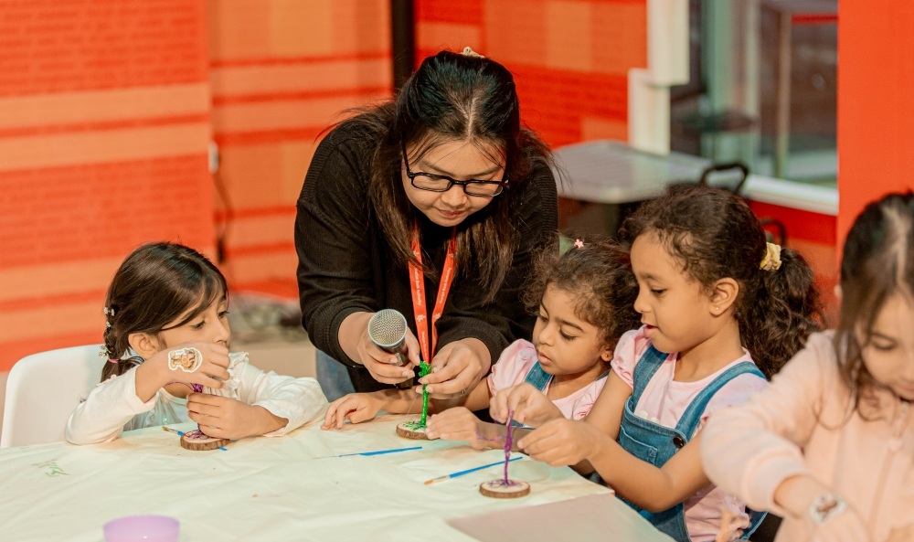 وقالت شيريل أنجليس، مشرفة الورشة:” تهدف الورشة إلى تعليم الأطفال معنى الصبر من خلال الفن، وإلى توعيتهم بأن الجمال يمكن أن يُصنع من أدوات بسيطة. فالأعمال اليدوية تمنحهم ثقة في قدراتهم وتساعدهم على تحويل الخيال إلى واقع ملموس”.