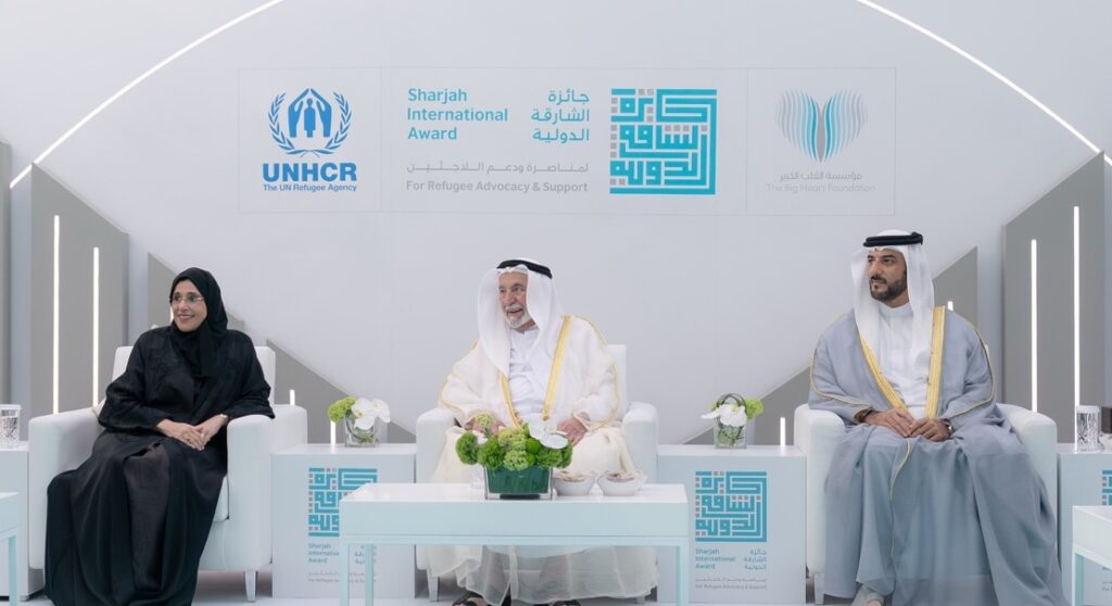 في 12 نوفمبر 2025/ كرّم صاحب السمو الشيخ الدكتور سلطان بن محمد القاسمي عضو المجلس الأعلى حاكم الشارقة، بحضور سمو الشيخ سلطان بن أحمد بن سلطان القاسمي نائب حاكم الشارقة، المبعوث الإنساني لمؤسسة القلب الكبير، وسمو الشيخة جواهر بنت محمد القاسمي رئيسة مجلس الشارقة للأسرة والمجتمع، المناصرة البارزة للأطفال اللاجئين في المفوضية السامية للأمم المتحدة لشؤون اللاجئين، صباح اليوم الأربعاء، منظمة “كونيكسيو إفريقيا”؛ الفائزة بالدورة الـ 9 من جائزة الشارقة الدولية لمناصرة ودعم اللاجئين.