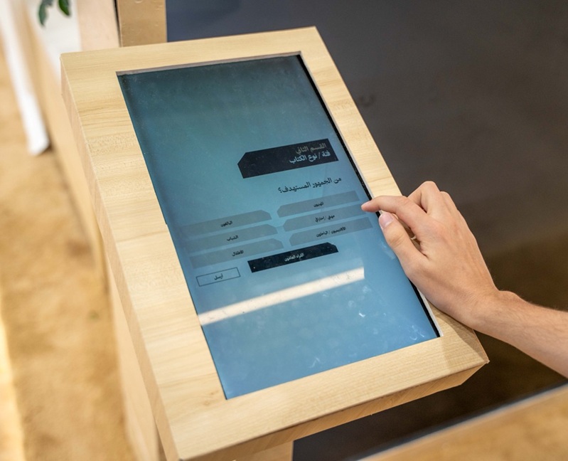 في مدخل الجناح، تقف شاشة كبيرة تحمل عنوان «اصنع غلاف كتابك»، تدعو الزوار إلى كتابة عنوان يختارونه بحرية، ليشاهدوا خلال ثوانٍ كيف يتحول النص إلى غلاف فني نابض بالحياة، يصوغه النظام الذكي بناءً على الكلمات المختارة، في مزيج بصري يجسد روح الفكرة أو المشاعر التي تختزنها العناوين.