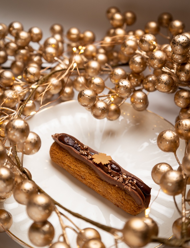 - استمتعوا بلحظات من الترف الخالص مع “إكلير الشوكولاتة”، المُحضر باستخدام شوكولاتة مدغشقر الفاخرة بنسبة 75% من توقيع “نيكولا بيرجيه”، بحشوة كريمة الشوكولاتة الغنية بقوام مخملي، مغطى بطبقة ناعمة من “جياندويا”، وهو مزيج متجانس من الشوكولاتة مع كريمة البندق، لتوازن مثالي بين الكثافة والنعومة. حلوى مترفة، تنسجم مع أجواء الإفطار أو كتحلية بوقت السحور، تأتي بسعر مناسب مقابل 51.50 درهمًا إماراتيًا للقطعة.