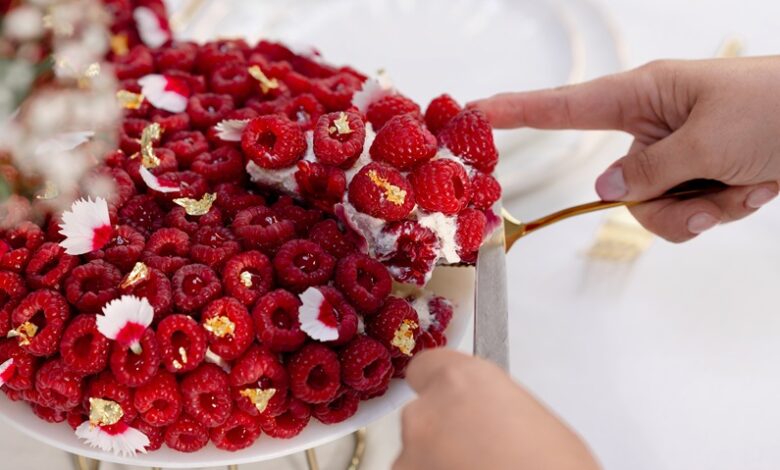 - تحتفي حلوى “أورو”، بالزعفران الذي يُعد أحد أشهر المكونات المحلية، لتتجلى كتحفة فنية تتصدر موائد الإفطار أو لمهاداة الأحباب خلال الشهر الفضيل. تناغم مثالي بين النكهات يبدأ بموس الشوكولاتة الناعم بنكهة الزعفران، يحتوي على شوكولاتة “نيكولا بيرجيه” من الإكوادور بنسبة 75%، تتخلله طبقات من كريمة النبق البحري والزعفران، مع الكعكة الإسفنجية بالشوكولاتة تتوسطها مربى التوت الأسود والأزرق، وقاعدة مقرمشة من اللوتس، مع لمسة أنيقة من التوت الطازج لمذاق لا يُقاوم، بسعر 385 درهمًا إماراتيًا للحجم الكبير، و65 درهمًا إماراتيًا للحجم الصغير.