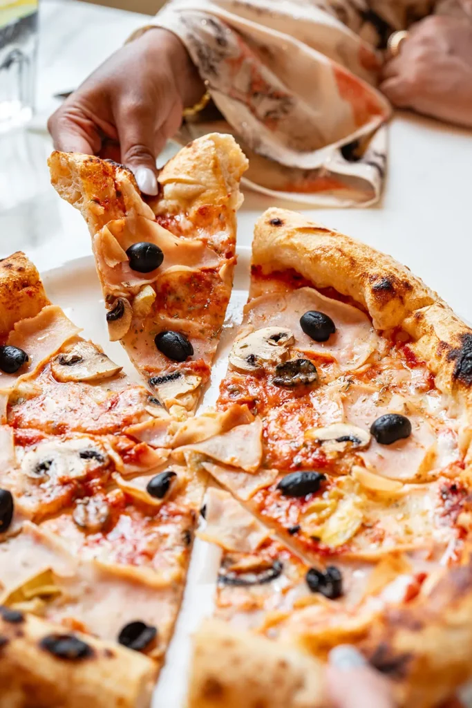 البيتزا المخبوزة في فرن مستورد من إيطاليا تأتي بعجين رقيق وقوام مثالي،