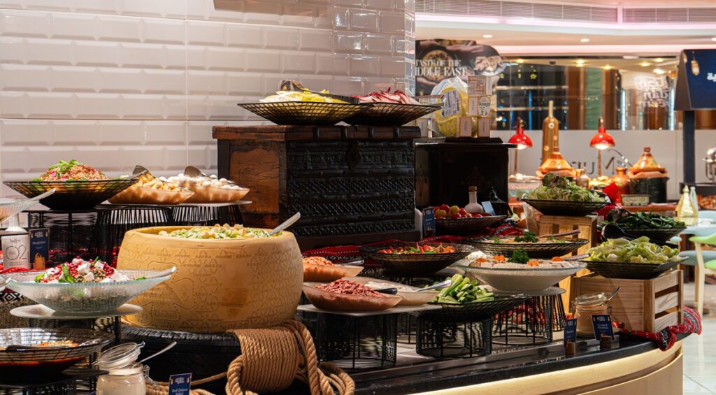 البوفيه الرمضاني لوحة عالمية تتوزع على أركان متعددة، كل ركن يحكي قصة مطبخ وثقافة.