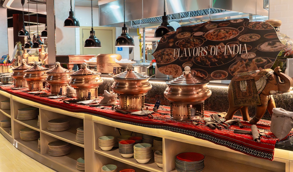 أما المطبخ الهندي، فيغمر المكان بعبق التوابل، من البرياني إلى الكاري بكل تنوعاته.